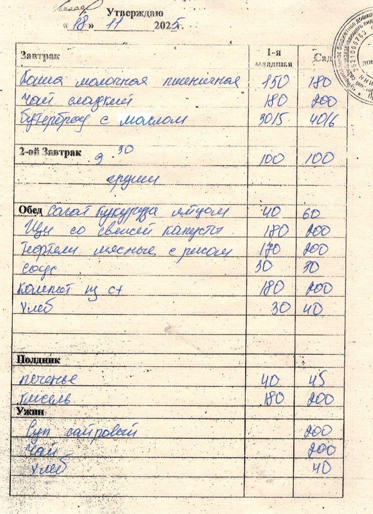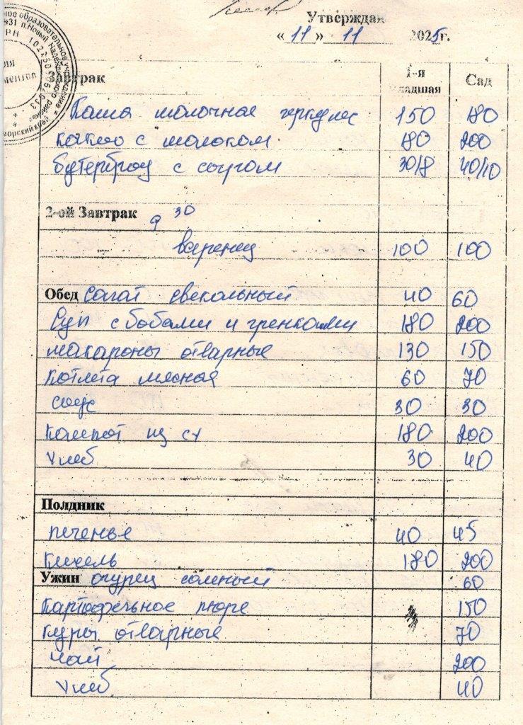 Ежедневное меню за Ноябрь 2025 г.