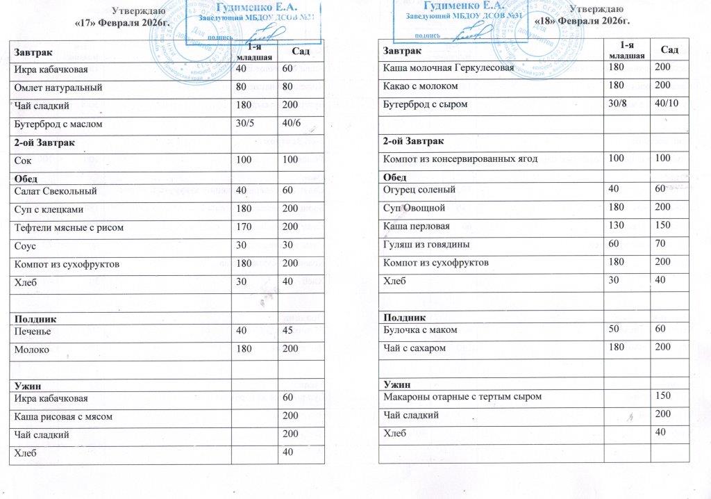 Ежедневное меню за Февраль 2026 г.