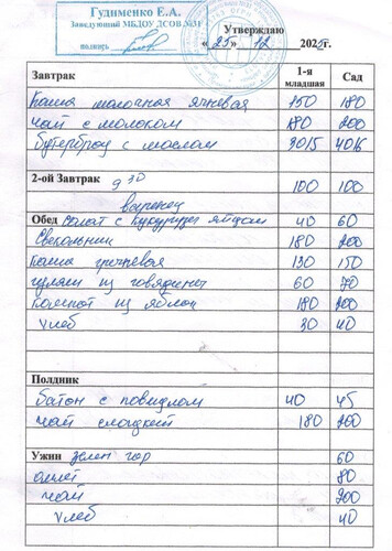 Ежедневное меню за Декабрь 2025 г.