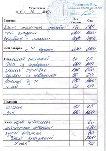 Ежедневное меню за Июнь 2025 г.