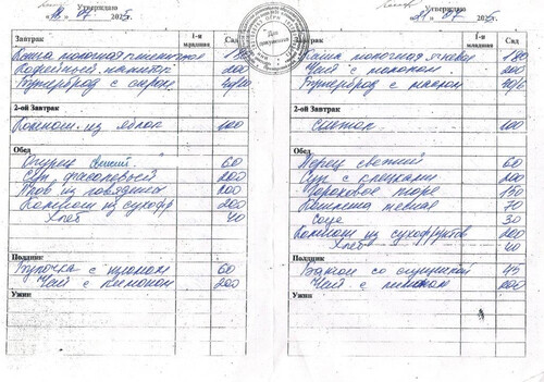 Ежедневное меню за Июнь 2025 г.