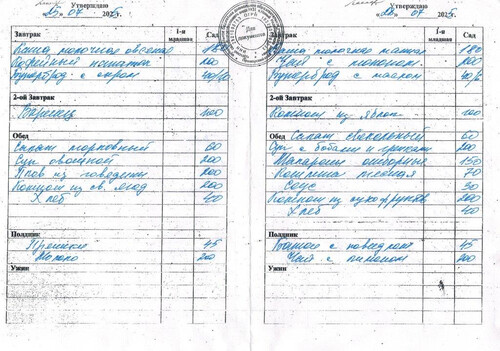 Ежедневное меню за Апрель 2025 г.