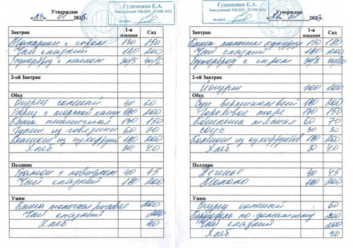 Ежедневное меню за Ноябрь 2025 г.