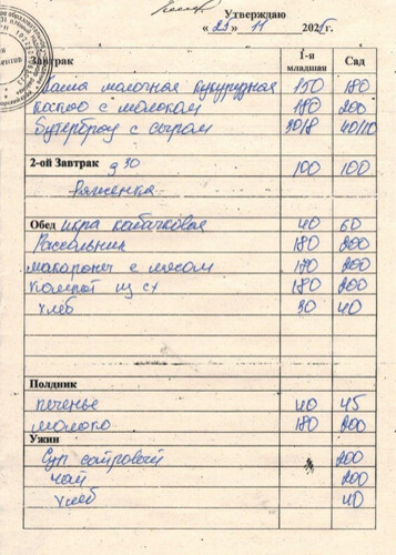 Ежедневное меню за Ноябрь 2025 г.